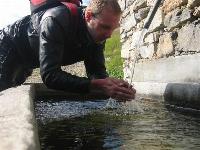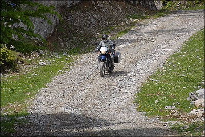 Sven an der Tränke am Tremalzo Paß (1665 m). Die Runterfahrt zum Gardasee ist nur für Fahrräder freigegeben.