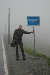 Sven am Flüelapaß (2383 m) Richtung Davos. 2°C und dann auch noch Hagel, da vergeht einem die Lust.