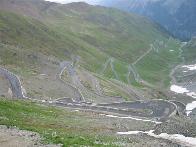 Der Blick nach unten, auf die 48 gefahrenen Kehren. Die Strasse ist mittlerweile neu Asphaltiert. Die Abfahrt nach Bormio durch die nassen Tunel und Galerien, habe ich mir diesmal erspart.