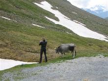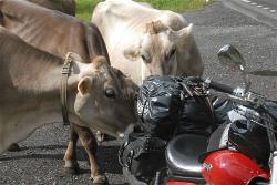 Ist dies die neue Schweizer Zollkontrolle? Die Kühe untersuchten mein Gepäck! Die meisten Italienischen und Schweizer Grenzkontrollen waren nicht besetzt.