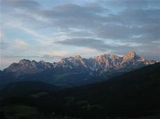 Blick von der Buttermilchalm bei St. Martin auf die Dachsteingruppe.