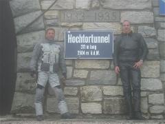 Sven und Andi am Hochtortunnel auf 2504 m, bei Regen Nebel und starkem Wind. Auf der Kaiser-Franz-Josefs-Höhe (2369 m) waren es 3°C.