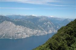 Blick auf den Gardasee und die Alpen vom Gasthaus "Bocca di Navena" auf 1300 m.