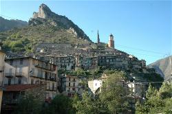 Viadukt aus der Römerzeit. Bergdorf kurz vor dem Paß de Tende.