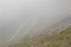 Die Abfahrt vom Timmelsjoch (Passo Rombo) auf Italienischer Seite ist bei weitem schöner zu fahren. Doch leider war von der Umgebung nicht viel zu sehen, da die Wolken tief hangen.