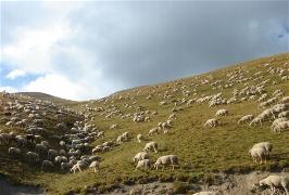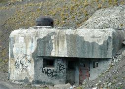 Bei der Abfahrt ist nur karge Mondlandschaft zu sehen, kein Schnee, nur jede Menge Bunkeranlagen mit tiefen Stollen, dafür viele Schafe.
