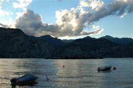 Nach der Regenfahrt durch die Dolomiten. Abends am Gardasee.