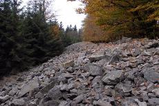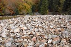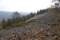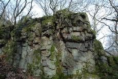 Aus bis zu 12 m hohen Quarzsteinen bestehende Steinwand bei Usingen.