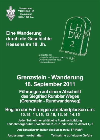 Eine Wanderung durch die Geschichte Hessens, benannt nach Siegfried Rumbler. Wanderweg durch den ehemaligen Hohemark Waldbesitz des Kurfürstentums Hessen Kassel, an dem viele historische Grenzsteine stehen. Der Rundweg startet am Sandplacken und führt unterhalb der Weißen Mauer entlang. Anrainer an dieses Stückchen Kurhessen waren das Großherzogtum Hessen Darmstadt, die Landgrafschaft Hessen-Homburg, das Herzogtum Nassau und die Freie Stadt Frankfurt. 1979 wurde der Grenzstein-Rundwanderweg vom Heimatkundlichen Arbeitskreis des Taunusklub unter Leitung von Siegfried Rumbler eröffnet.